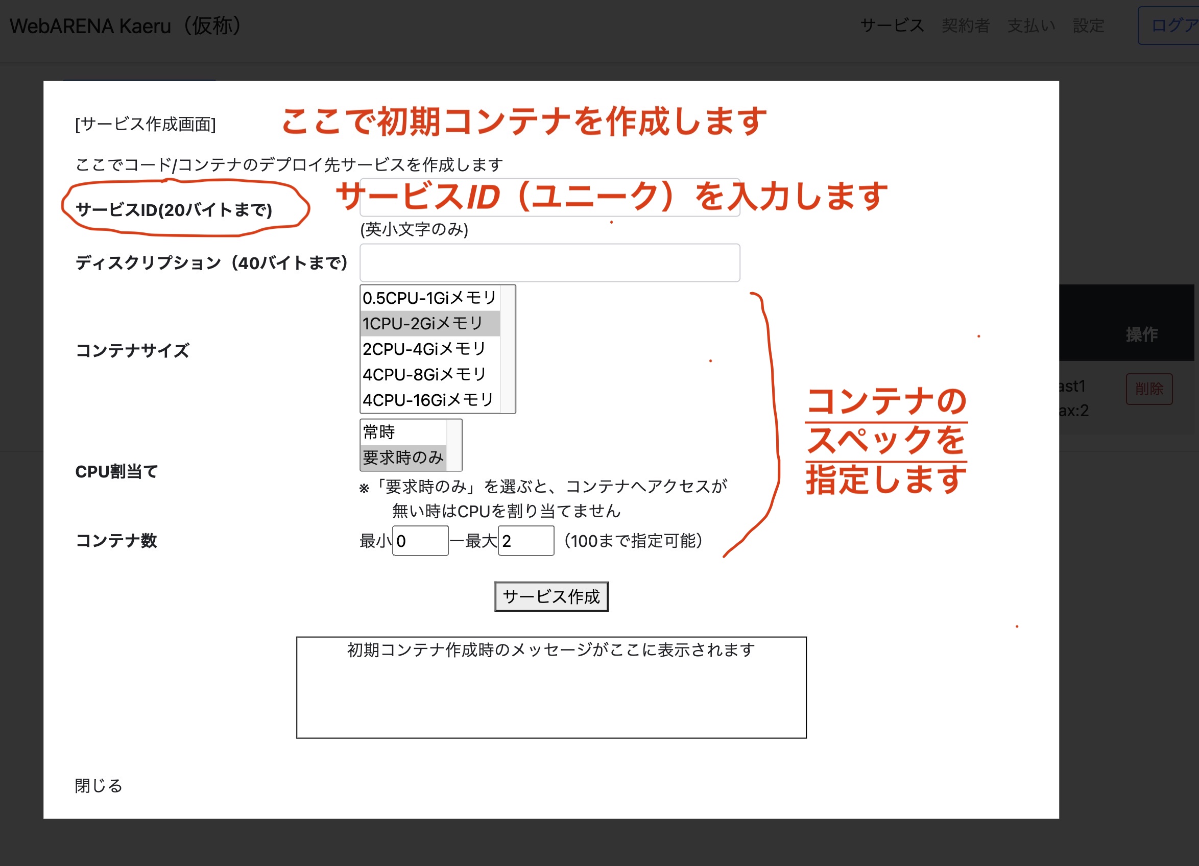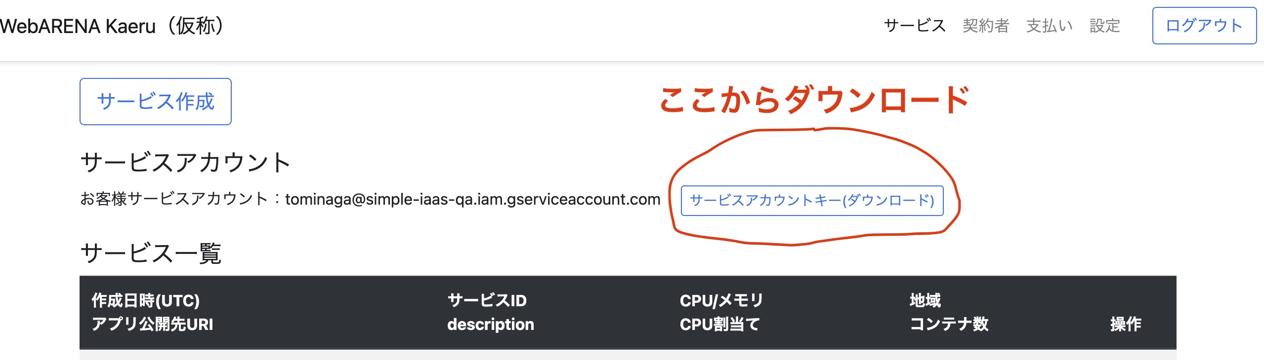 | サービス利用方法 | ①ユーザ登録 ・ユーザ登録時、GCPのサービスアカウントが裏で作成されます。画面下側から登録できます。 ・ログイン後、サービスアカウントキーファイルをダウンロードします ②初期コンテナを作りましょう ・kaeruコンパネからコードのデプロイ先となる初期コンテナ(HelloWorld)を作ります。 ここで指定したサービスIDはあとで使います。 ③あなたの開発環境からサービスアカウントでクラウド(GCP)へアクセス ・ダウンロードしたサービスアカウントキーファイルを使ってクラウド(GCP)へアクセスします <gcloudへのログイン> コマンド例:gcloud auth activate-service-account --key-file=XXXXXXXX.json(ダウンロードしたファイル名) <gcloud ログイン状態の確認> コマンド例:gcloud auth list <gcloud ログアウト> コマンド例:gcloud auth revoke ・開発マシンから直接クラウドへアプリをデプロイします <gcloudコマンドで開発マシンのディレクトリ(カレント)内のソースをデプロイ> コマンド例:gcloud run deploy XXXXXXXXX<サービスID> --project simple-iaas-qa<今回PoCでは固定> --region asia-northeast1 --platform managed --source . 以下の順番で処理が自動で実行されます。コンテナイメージ作成が長引く場合、数分間かかります。待ちましょう。 処理1 クラウドストレージへのソースアップロード、 処理2 BuidPackによるコンテナイメージ作成 処理3 Artifact registoryでのリビジョン管理、プログラムの検疫(不正なプログラムの検出) 処理4 Ingressプロキシとコンテナの接続、サービスのデプロイ ④アプリ公開先URIへアクセスし、アプリが正常にデプロイされたことを確認 |